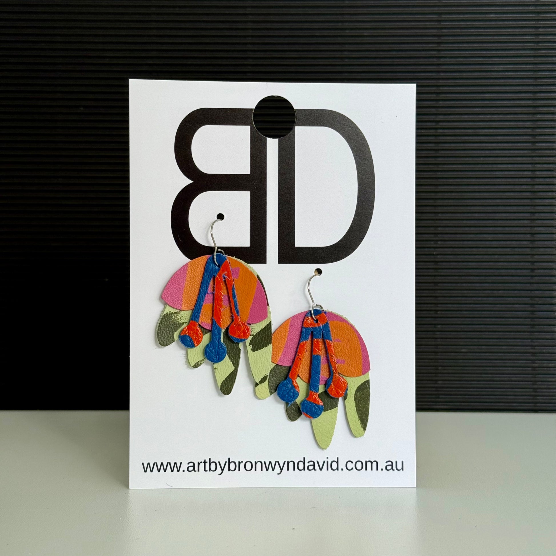 Gumnuts - Handmade Painted Leather Earrings - Lightweight Statement Jewellery | Artisan Crafted