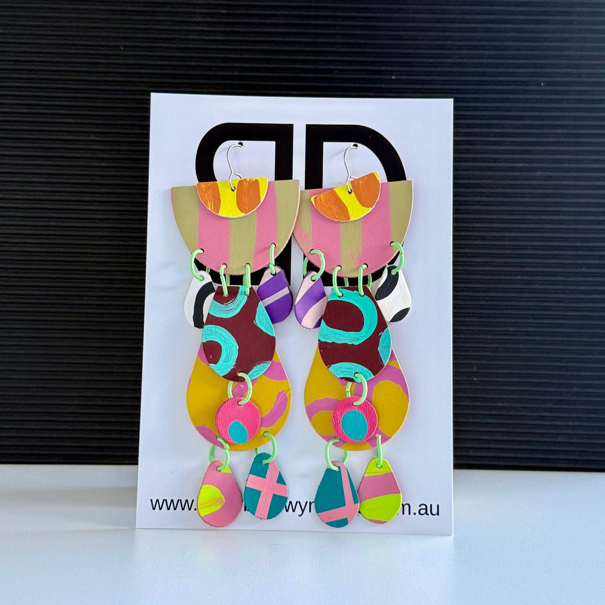 Half Moon Mega Statements- Handmade Painted Leather Earrings - Lightweight Statement Jewellery - Aboriginal Design | Artisan Crafted