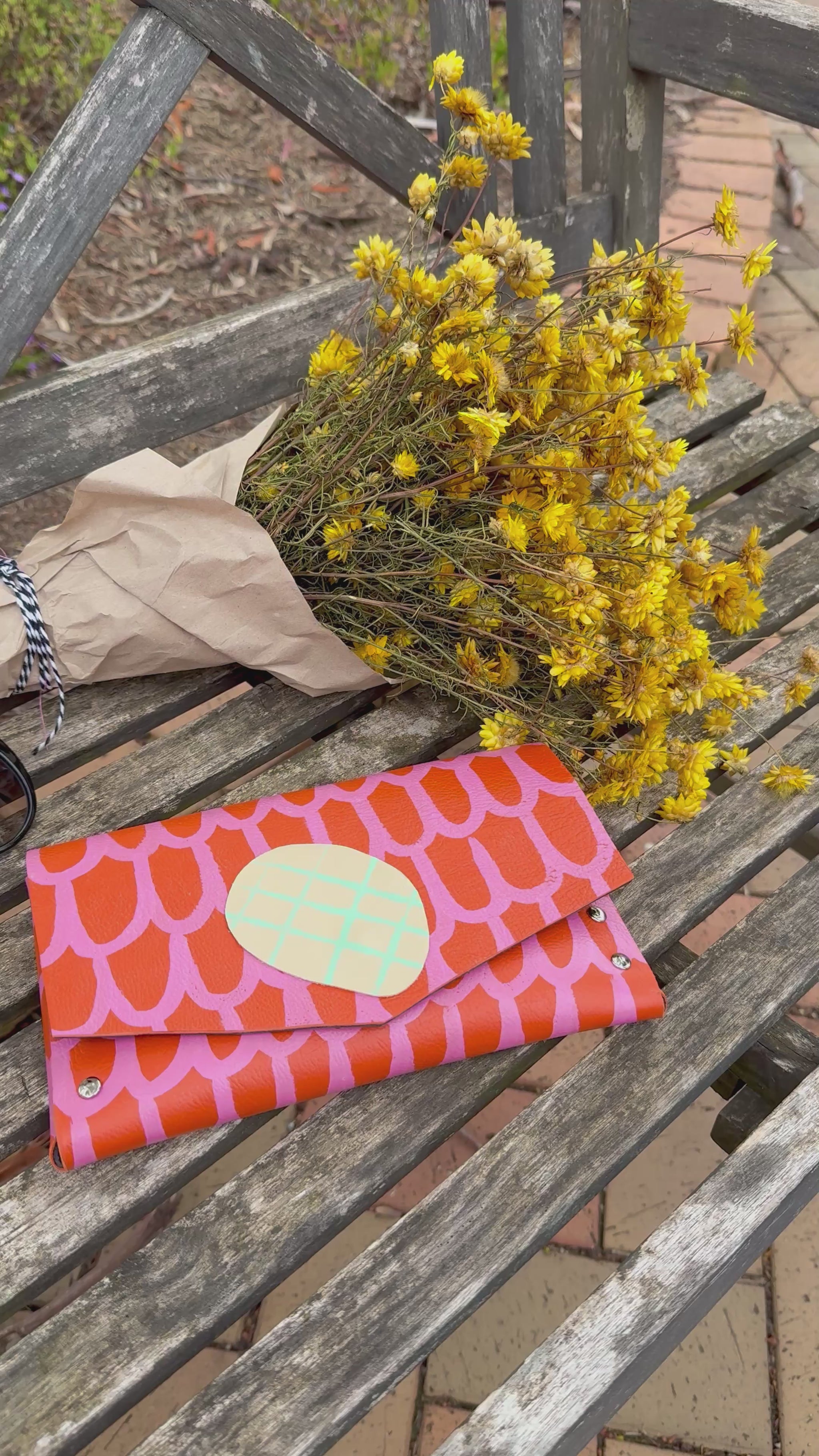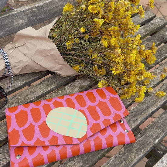 Crafted from quality leather, each clutch features bold, hand-painted designs inspired by my love of mark-making and storytelling through pattern. The natural variations in the leather and the hand-painting process ensure that every clutch has its own unique character, making it a functional artwork you can carry with you.