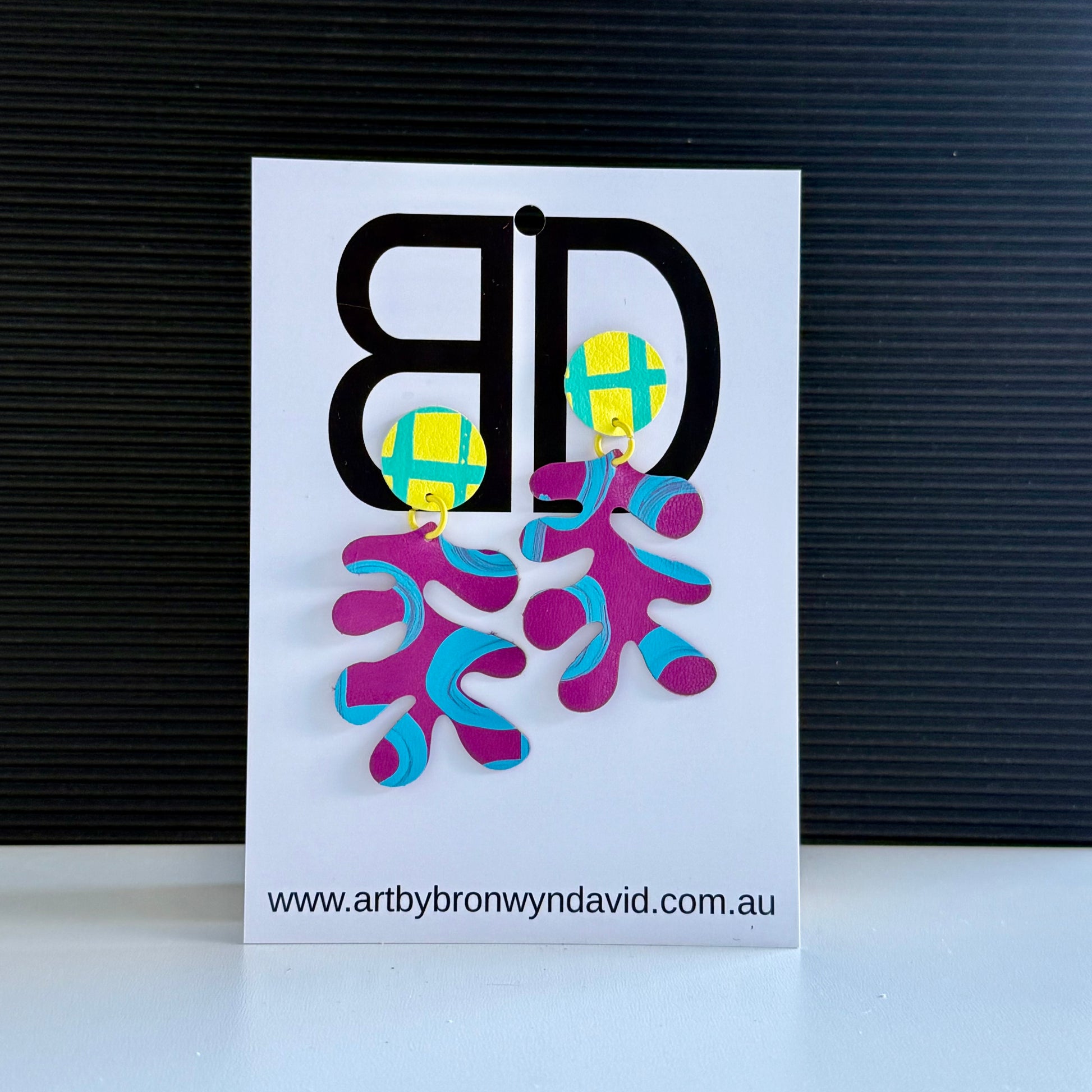 Kelp Earrings - Handmade Painted Leather Earrings - Lightweight Statement Jewellery | Artisan Crafted