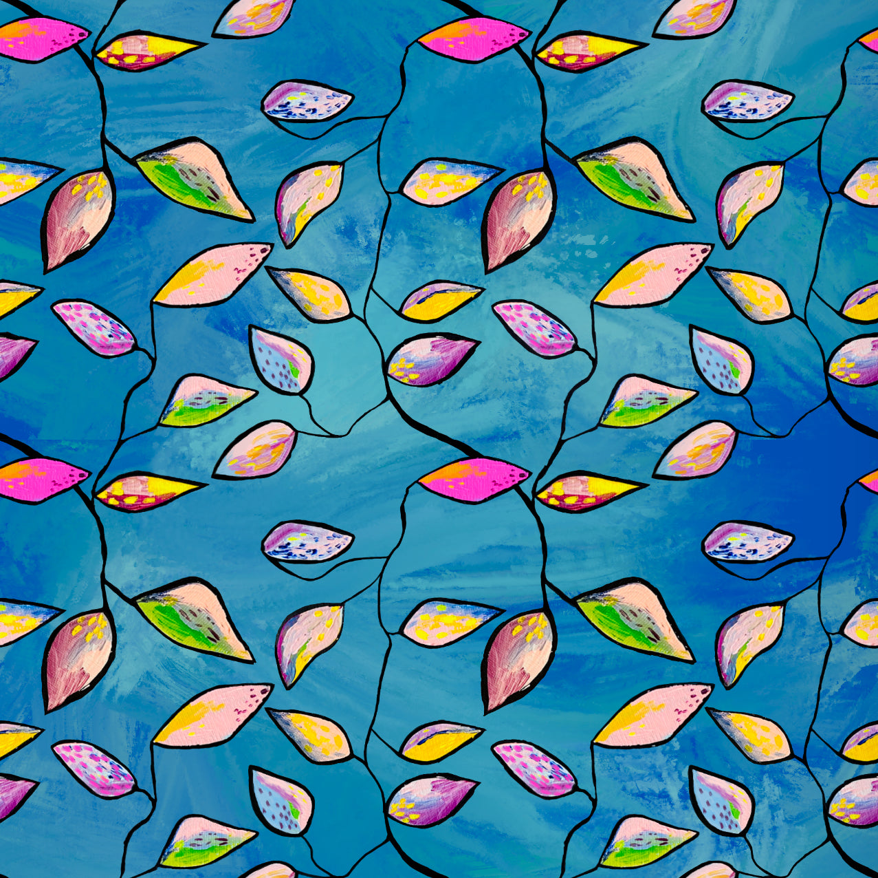 Gum Leaves: Flowing branches adorned with intricately patterned leaves capture the life force that pulses through our trees, each leaf a unique fingerprint of Country's botanical heritage. Set against flowing blue skies, this piece honors the medicinal, spiritual, and practical knowledge held within these sacred trees, celebrating the ongoing relationship between Fist People’s people and the native flora that provides healing, shelter, and cultural connection.