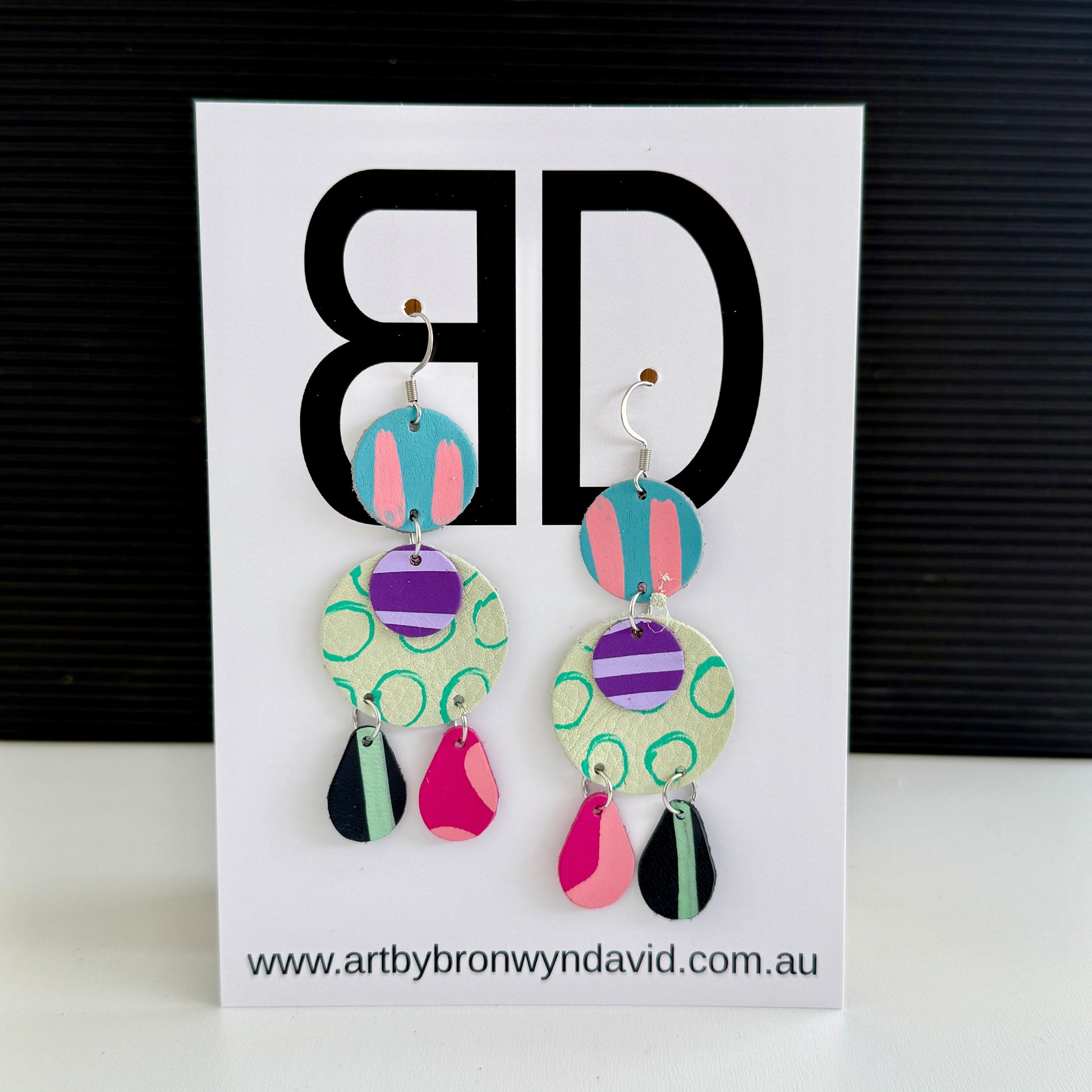 Triple Drop - Handmade Painted Leather Earrings - Lightweight Statement Jewellery | Artisan Crafted