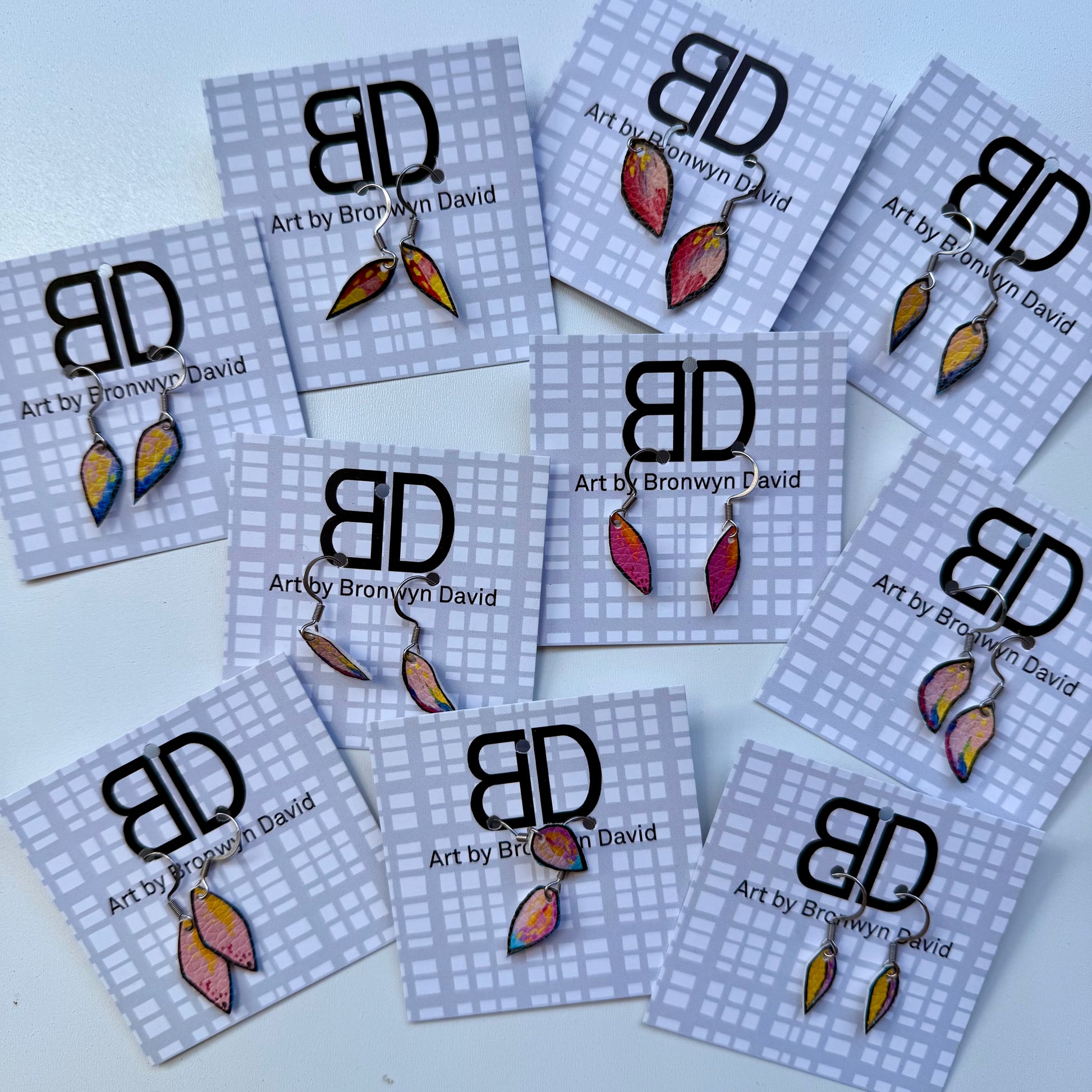 They are made to order so you may get different pattern leaves. No two pairs are ever the same!